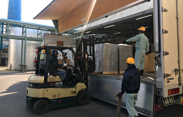 トラックドライバーと打ち合わせた後積み順に気を付け積み込み作業を行います。